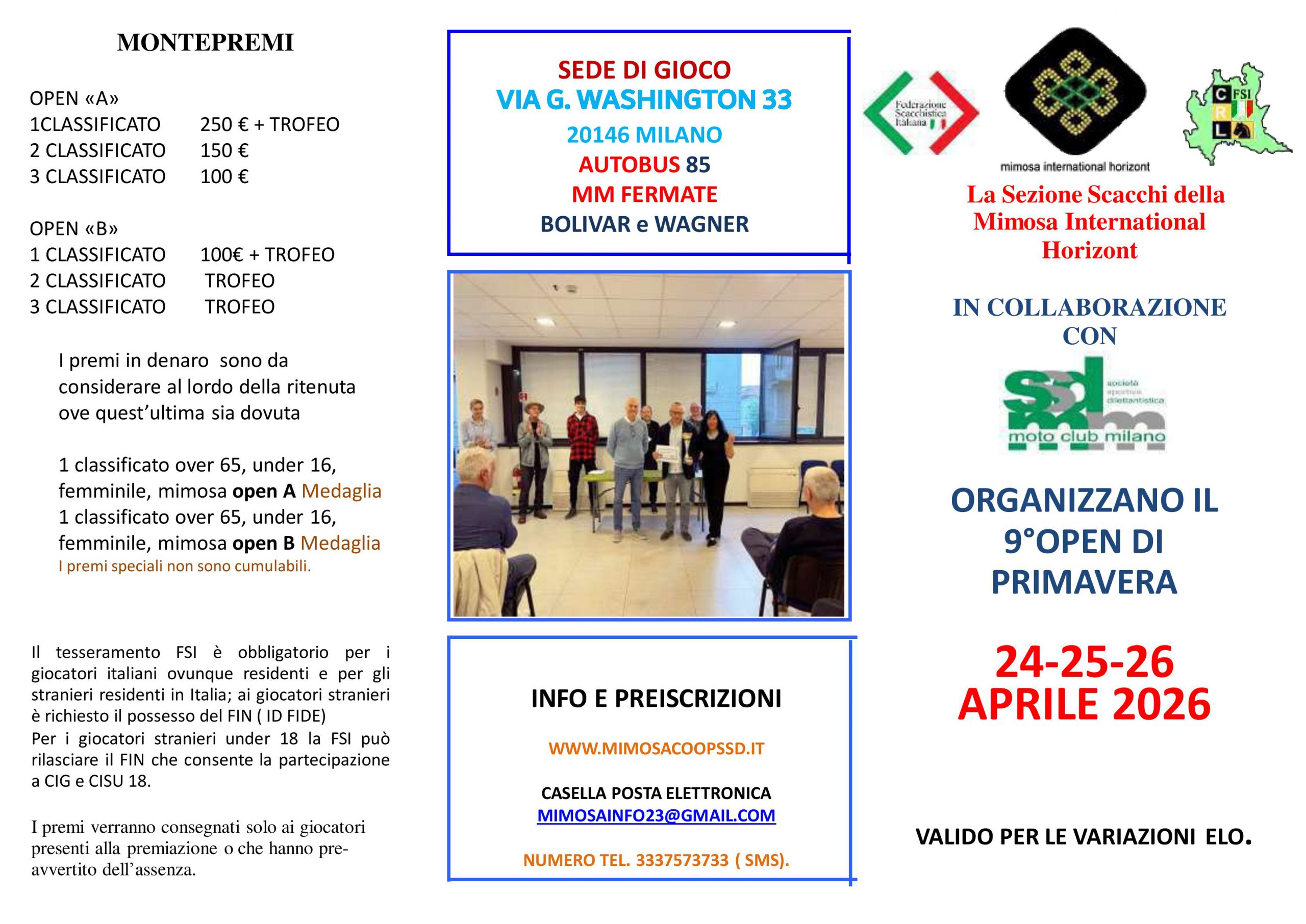 9° FESTIVAL DI PRIMAVERA WEEK END 24-25-26 APRILE 2026 VIA WASHINGTON 33 MILANO Posted on: 1 Aprile 2026, by : Mimosa International